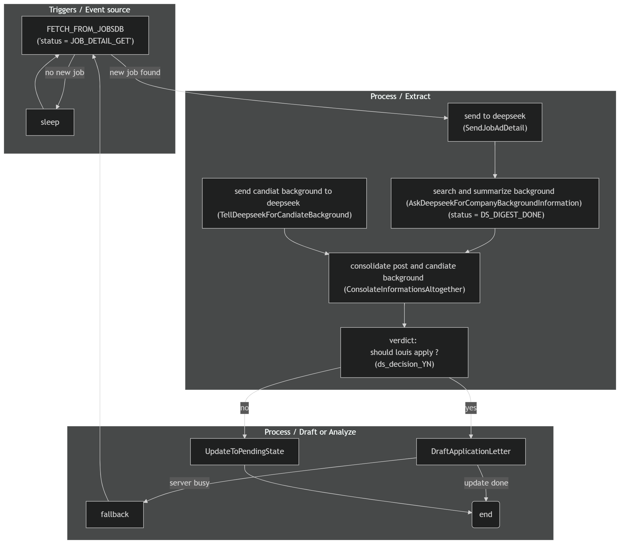 - if new entry found, send the sanitized message(markdown) to deepseek (SendJobAdDetail)